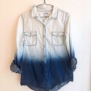 Old Navy Button Up Dip Dye Ombre Gradient Chambray Denim Shirt