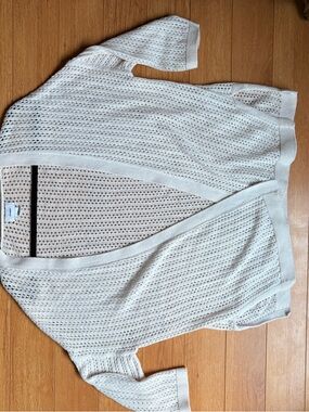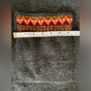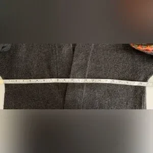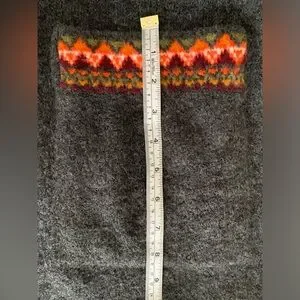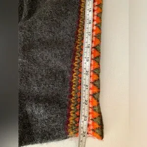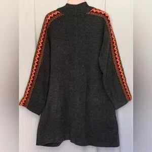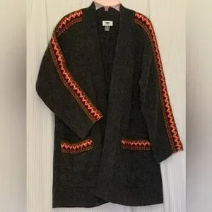 Fabulous fall to winter sweater. Heavier weight knit. Has stretch. Darker gray body with the beautiful color medley of the Aztec like pattern trim detail gives that perfect finished touch. Generous sized pockets and open front style.