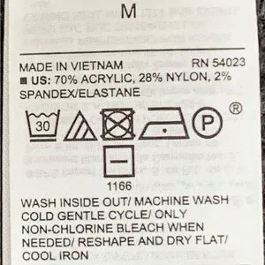 Fabric: 70% Acrylic 28% Nylon 2% Spandex