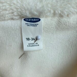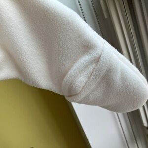 Childs white hooded one piece with bear ears and closed hand detail made in Cambodia. P2P: 12 in. Arms: 14 in. Length: 16 1/4 in.