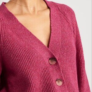 pink cardigan, ribbed knit sweater, button-up cardigan, cozy knit, V-neck cardigan, chunky buttons, fuchsia sweater, magenta sweater, layering piece, Fall fashion, Spring sweater, Casual style, versatile cardigan, business casual, teacher, office, weekend, essential, capsule wardrobe, normcore, romantic, Valentine's day sweater, feminine, soft, stretchy, preppy, academia, school, college, university, collegiate, back to school, American prep, preppy, clean, simple, timeless, classy, classic, minimalist, bright color, functional, festival, cropped, comfy, comfortable, effortless