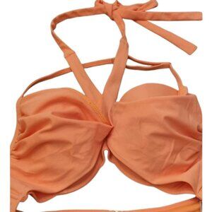 Old Navy gorgeous tangerine shade bikini top and bottom. The top is underwire, and the fabric crosses over the bra and ties at the back.