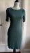 Stylish dark green midi dress. Features a fitted silhouette and a deep scoop back neck. Lovely rib knit fabric, this is a bodycon style with slightly elongated short sleeves. Great for layering with a cropped jacket or long cardigan, can easily be dressed up or down.