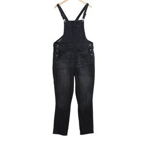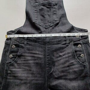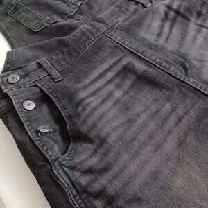 Denim overalls in a black shade. The fabric is lightweight but sturdy with a tiny bit of stretch. They come with adjustable shoulder straps and a 3-button closure on each side. There’s belt loops so you can customize your look with different belts. Perfect for all year round. New without tags. Excellent condition.