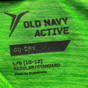 Youth large in Old Navy fits a size 10/12. Drifit activewear top in neon green. You won’t lose your kid in this athletic top. Short sleeved and breathable. Perfect for spring/summer for your son’s wardrobe! In good condition. May have some small light marks. Smoke-free home. Outgrown here.