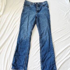 Medium wash high-rise bootcut jeans. Worn a few times, but they didn't really fit my body type. Open to lower offers, measurements available upon request