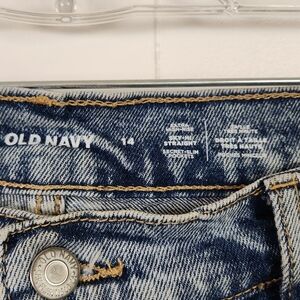 Old Navy Extra High Rise Sky High Straight Leg Jeans Size 14 Button Fly Denim