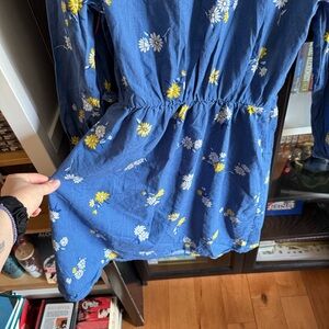 Embrace elegance with this floral blue wrap dress. Perfect for any occasion, it features a charming floral pattern that adds a touch of sophistication.