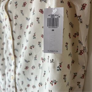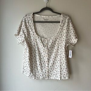 Old Navy Floral Button Front Ribbed Scoop Neck Tee 2X NWT Cottagecore Stretch