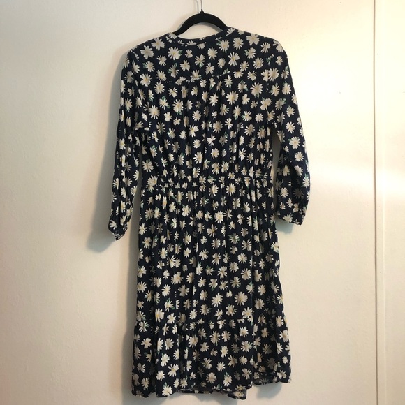 Old Navy Floral Daisy Dress Size M Blue Navy Buttons Coastal Summer