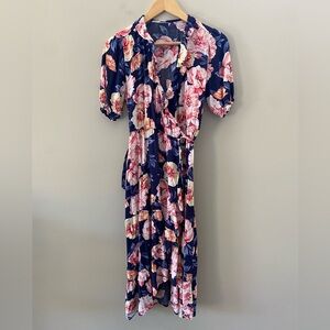 Old Navy Floral Navy Blue and Pink Midi Wrap Dress
