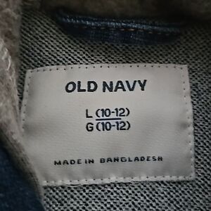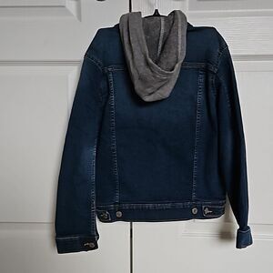 Old Navy Girl's Denim Button Front Jacket With Hoodie 10-12 Dark Blue Washed