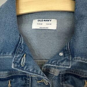 Old Navy Girls Denim Jacket Size XL. Washed a worn just a handful of times- still in great condition. Washed just enough to soften the jacket slightly so it’s ready to go! Great addition for back to school wardrobe 📚 98% Cotton 2% Spandex.