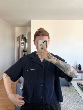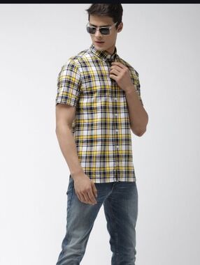 Casual short-sleeve shirt with vertical stripes. Perfect for everyday style.