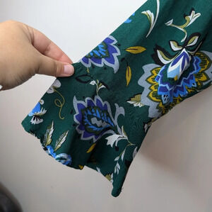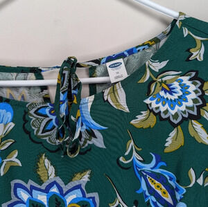Old Navy Green Floral Print Fit & Flare Bell Sleeve Tie Back Dress Women 14