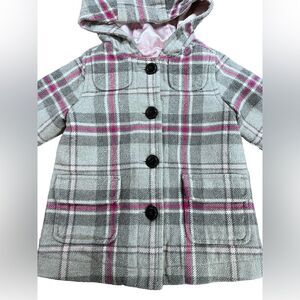 Old Navy Grey and Pink Plaid Pea Coat- 12-18mon
