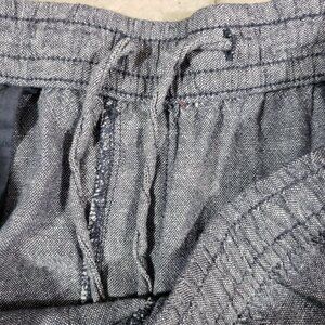 -FEATURES: Elastic waist with drawstring, side and back pockets, cropped look.