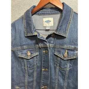 Old Navy Jean Jacket Women L Pocket Denim Button Up Long Sleeve Medium Wash Blue