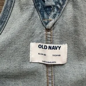 Stylish denim overals/ dress Girls size XL (14-16) . Features front zipper and pockets. Adjustable straps that could be adjusted 3 different length sizes.Perfect for casual wear.