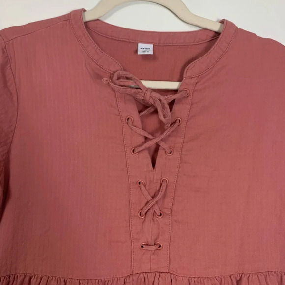 Old Navy Lace-Up Twill Shift Dress Pink Women’s Sz Med Cottagecore 100% Cotton