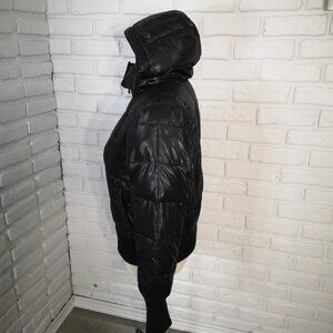 Old Navy Ladies Size Medium Shiny Black Fleece Lined Puffer Bomber Jacket