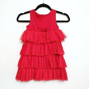 Old Navy Layered Dress Girls Size 4T Red Sleeveless Polyester Back Zip Christmas