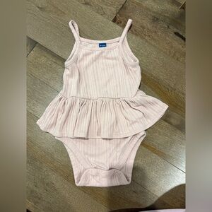 Charming light pink romper with delicate ruffles. Ideal for a stylish baby outfit.