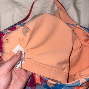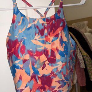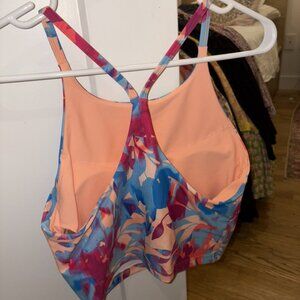 Size medium sports bra with removable cups and a supportive band around the bust. Racerback. Great condition, only worn a few times casually. Longline so it doubles as a crop top tank top depending on your preferences.