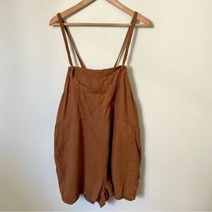 Old Navy Linen-Blend Utility Romper Light Brown Size Large. Front pockets. Tie straps. 55% linen, 45% rayon. Lightweight flowy bohemian look, perfect for summer. Excellent condition.