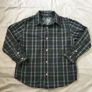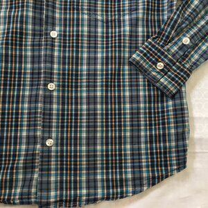 Old Navy Live Boys Button Up Dress Shirt Plaid Sz Medium (8) Blue Cotton