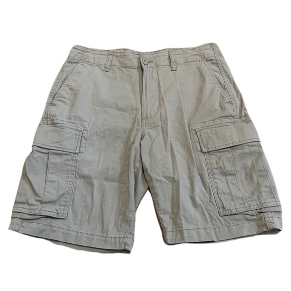 These are a pair of classic Old Navy Lived-In Straight Cargo shorts in a khaki color. They are size 33 and feature multiple pockets for a functional and casual look. The material is a soft, durable cotton. Perfect for a relaxed, everyday style. Gently used and in great condition.