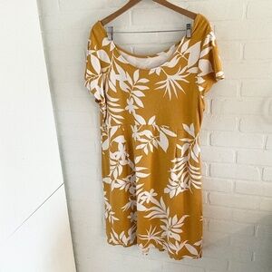 Old Navy Maternity Midi Dress Leaves print white/Marigold yellow mustard XXL