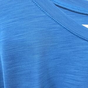 This long sleeve tshirt from Old Navy features a vibrant blue hue and long sleeves, perfect for a casual and comfortable look. The soft, lightweight fabric and rounded neckline add to its easygoing style, making it an ideal choice for everyday wear. Length 30" Bust 48" Sleeves 27"