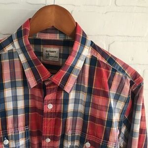 Old Navy Men’s Button down shirt Red Navy Plaid Skater men/unisex L