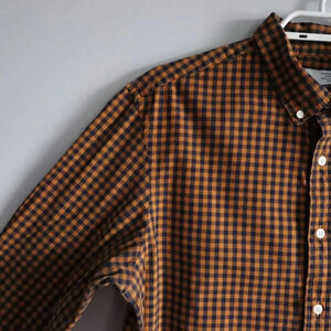 Old Navy Men's Large Orange Plaid Regular Fit Buttoned Collared Long Sleeve Top