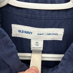 Old Navy Mens XXLarge Slim Fit Linen Cotton Blend Button Up Shirt Navy