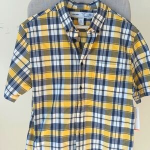Old Navy Men's Yellow Plaid Shirt Short Sleeve - Slim Fit Size M NWT