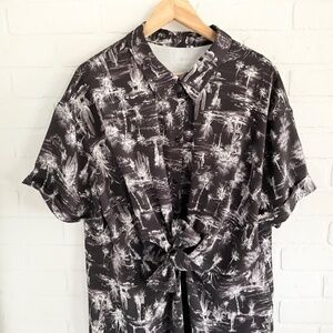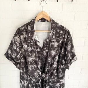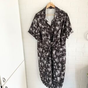 Old Navy Midi Shirt Dress Collared Southwestern print Black White Gray Bow 2X