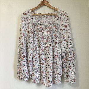 Old Navy Multicolour Geometric Boho Shirt With Tassels Flowy Lightweight Size Lg