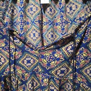 Chic geometric design with vibrant colors. Lightweight and comfortable. Flowy boho vibe with tassel detail. Size large.