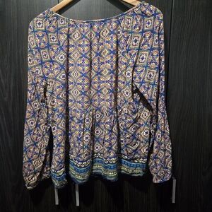 Old Navy Multicolour Geometric Boho Shirt With Tassels Flowy Lightweight Size Lg