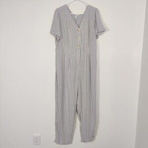 Old Navy NEW Women's Jumpsuit Size 1X Striped Blue White Linen Viscose Summer