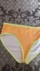 Stylish bikini set. Strappy Cross-Back Bikini Top and matching bottoms in cantaloupe with neon green trim. Perfect for summer beach days.
