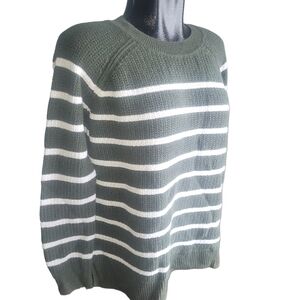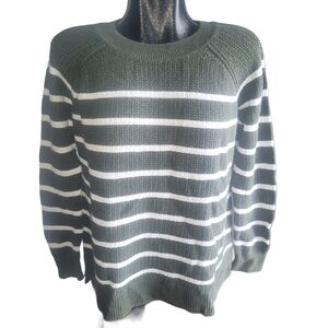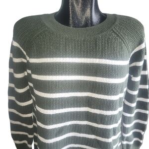 Old Navy Olive Green and White Striped Sweater Sz.L