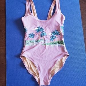 Lilack purple palm tree one piece swimsuit in good preowned condition.