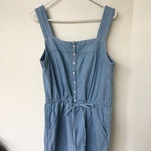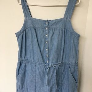 Old Navy Overalls Light Wash Blue 100% Cotton Button Up Drawstring Waist