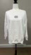 Cotton blend bright white with navy blue screened image on front and back. Ribbed collar, hem and cuffs.
