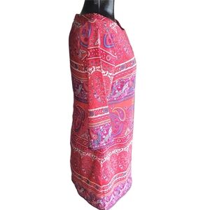 Old Navy Paisley Print Red Shift Dress with Cropped Sleeves M