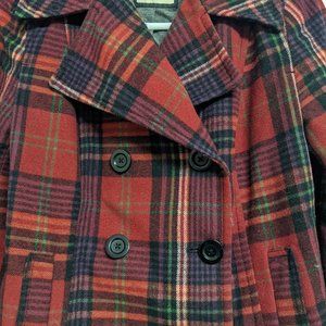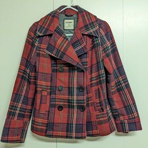 Old Navy Peacoat Jacket Double Breasted Plaid Red Buffalo Check Wool