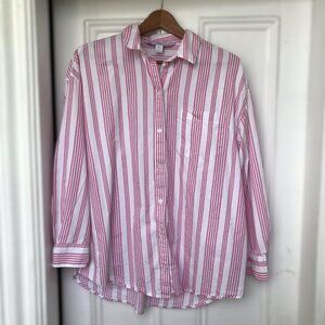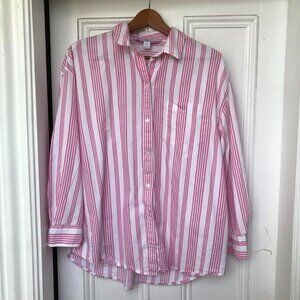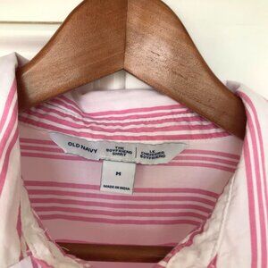 Old Navy Pink Strip Collared Button Up Women Size Medium *READ*